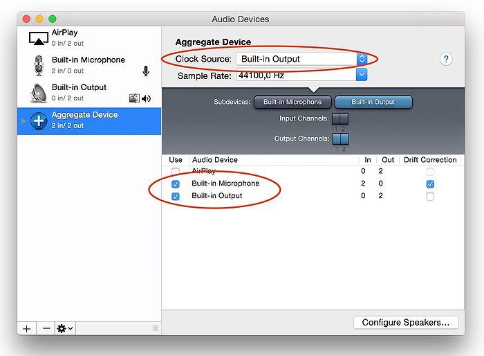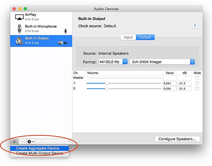 If you wish to aggregate 2 or more audio devices (make them into one) so they would appear as one single audio device here is what you have to do: